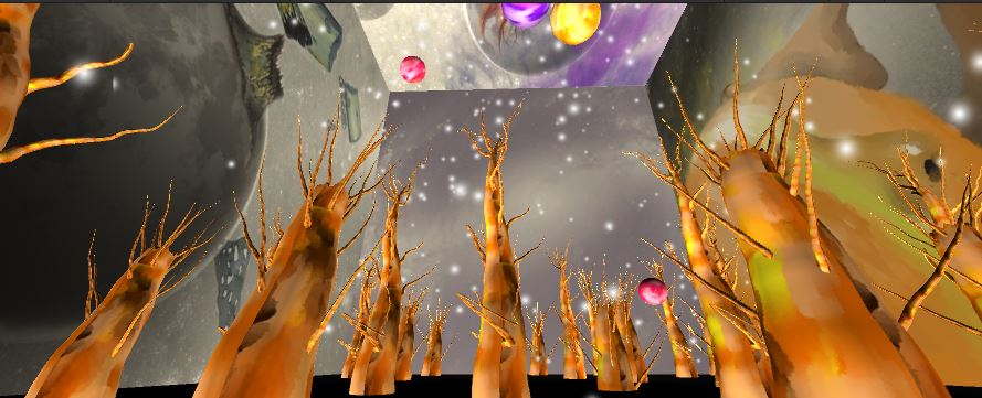 Features: Tags: - High degree of freedom, free interaction Singleplayer - Artist's Surrealism work of art on wall Open world Game - Conscious mind world of artist Virtual Installation Art - Bouncy Planets with space drawn background - Snowfall with drawing of camellia flower - Trees and broken trees with brush stroke texture